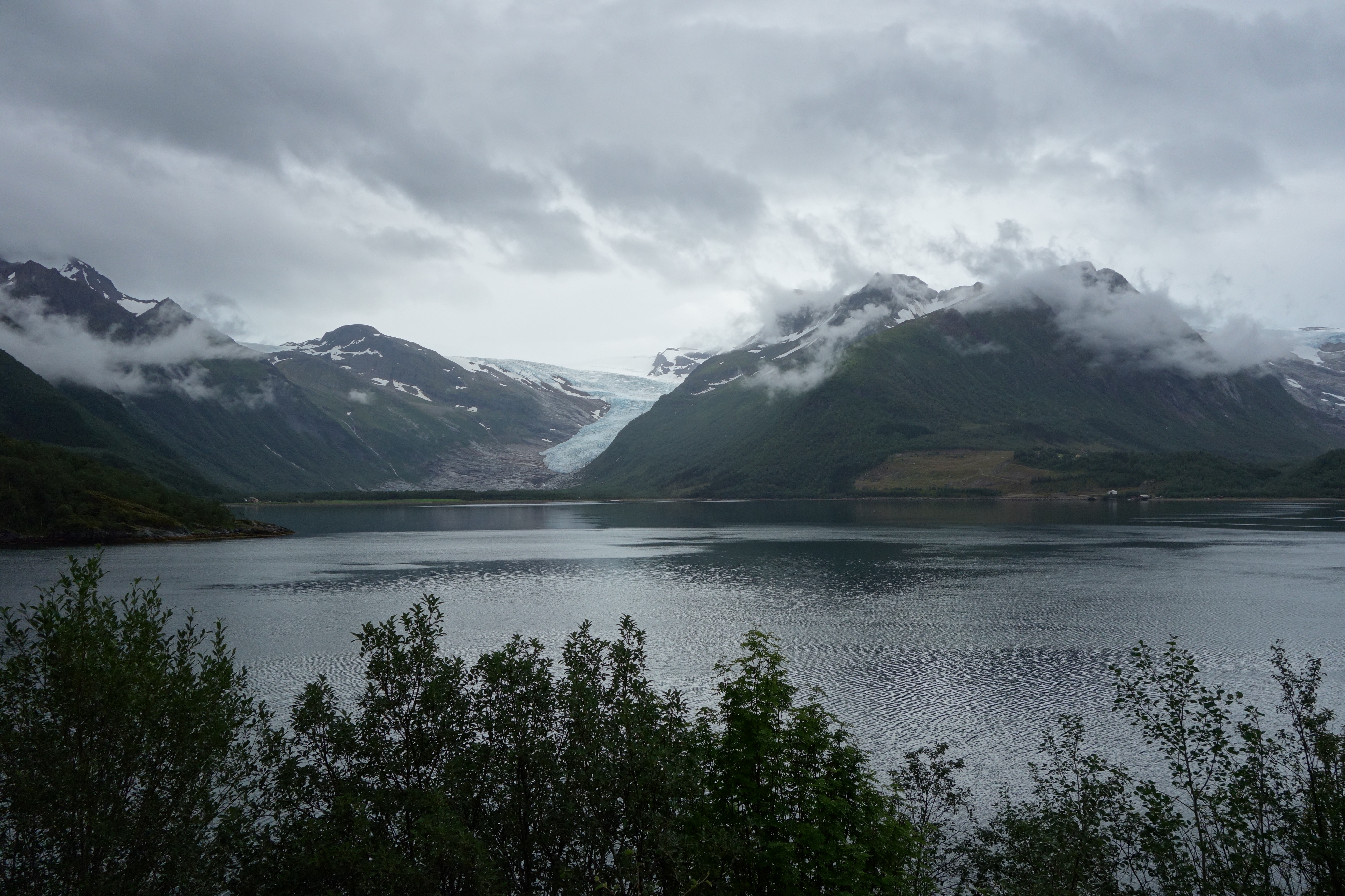 Det ble pga. regnet ikke særlig mange stopp eller bilder, men jeg fikk tatt et av Svartisen på vestsiden når jeg passerte Saltfjellet – rimelig grått og trist desverre.